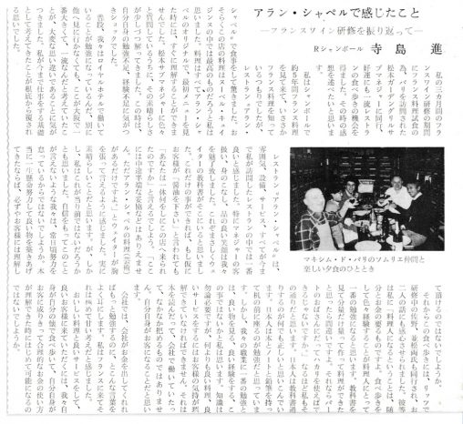 1978年フランス研修の思い出 当時、ロイヤルホテルのレ…